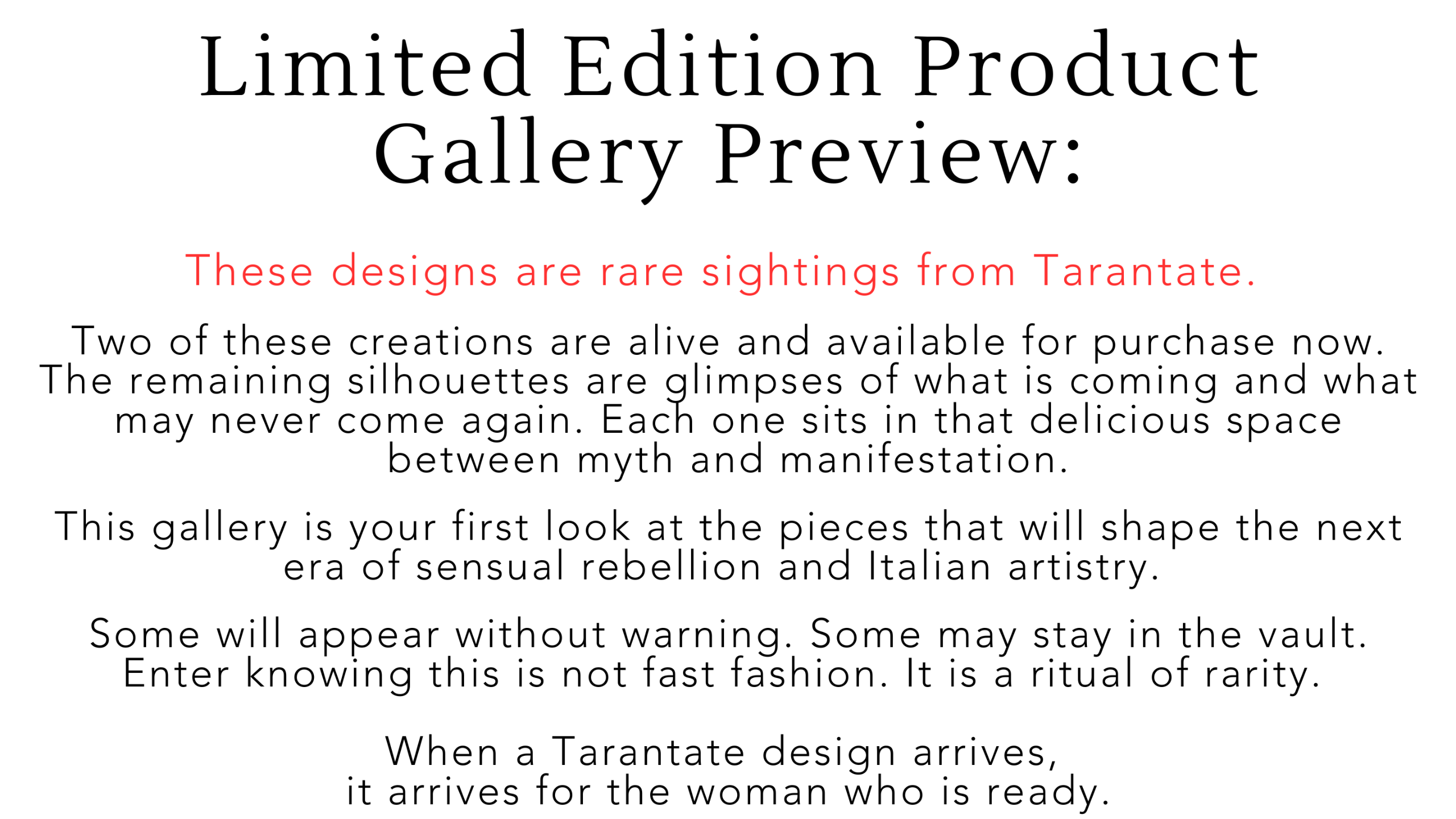 More than a brand, Tarantate is made for the woman who leads a double life and transitions effortlessly from corporate empires to pleasure activism, from the strategic to the primal and seductive.