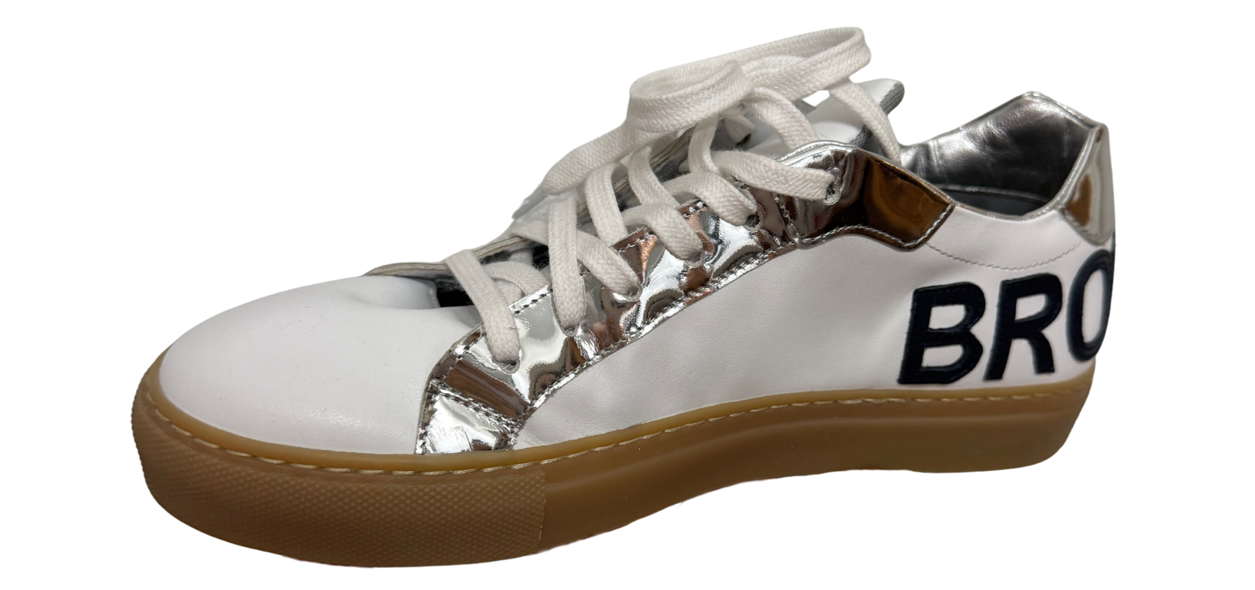 Crafted in Italy, Comare reimagines the classic low top through a Tarantate lens: clean, sculpted lines, bold embossed accents, and panels of reflective silver material that catch the light like a knowing glance.